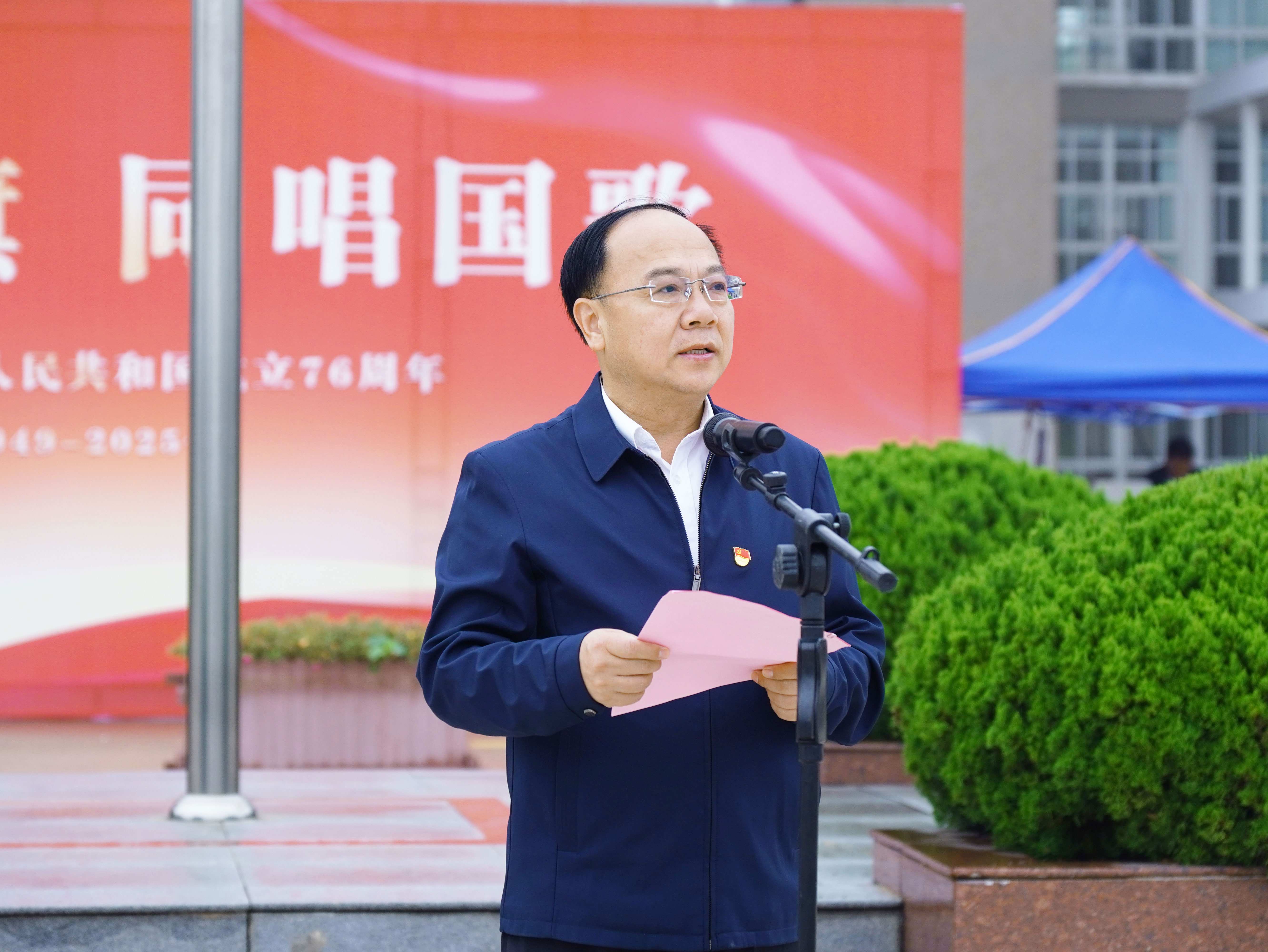 为庆祝中华人民共和国成立76周年,唱响礼赞新中国、奋进新时代的昂扬旋律,2025年9月26日上午7时,蚌埠学院“同升国旗 同唱国歌”主题活动在图书馆前广场隆重举行。校领导、职能部门主要负责同志、各二级学院党组织书记、党外人士代表,以及2025级全体新生和新生辅导员齐聚现场,以庄严仪式凝聚爱国情怀,传递奋进力量。