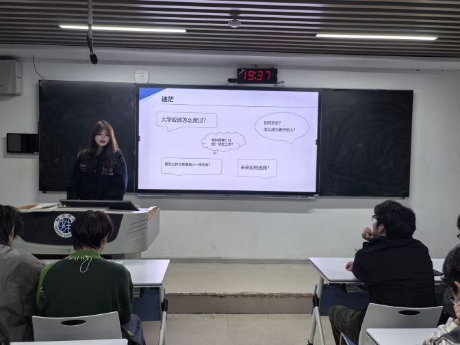 在互动交流环节,新生围绕“社团与学业如何兼顾”“工科专业基础课程学习方法”等问题踊跃提问,三位分享人结合自身经验细致解答。整场分享内容紧贴学生实际,既有高屋建瓴的路径指引,也有细致入微的实操建议,涵盖学业规划、竞赛准备、考研就业等多维议题,并对“盲目考证”“拖延内耗”等常见误区予以提醒,切实帮助新生从“知道”走向“做到”。