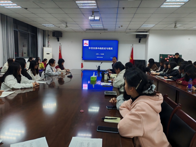 党课上,朱宏胜从历史维度出发,系统梳理中日交往渊源与近代复杂历程,深入剖析甲午战争、抗日战争等事件,让同学们深刻认识到历史对中日关系发展的深远影响,铭记抗战历史、以史为鉴的重要性。随后,他结合当下国际局势,解读中日关系现实状况与发展趋势,分析两国在经济、文化、政治等领域的互动与博弈,引导大家深刻领悟维护国家利益与推动地区和平稳定之间相辅相成、辩证统一的关系。