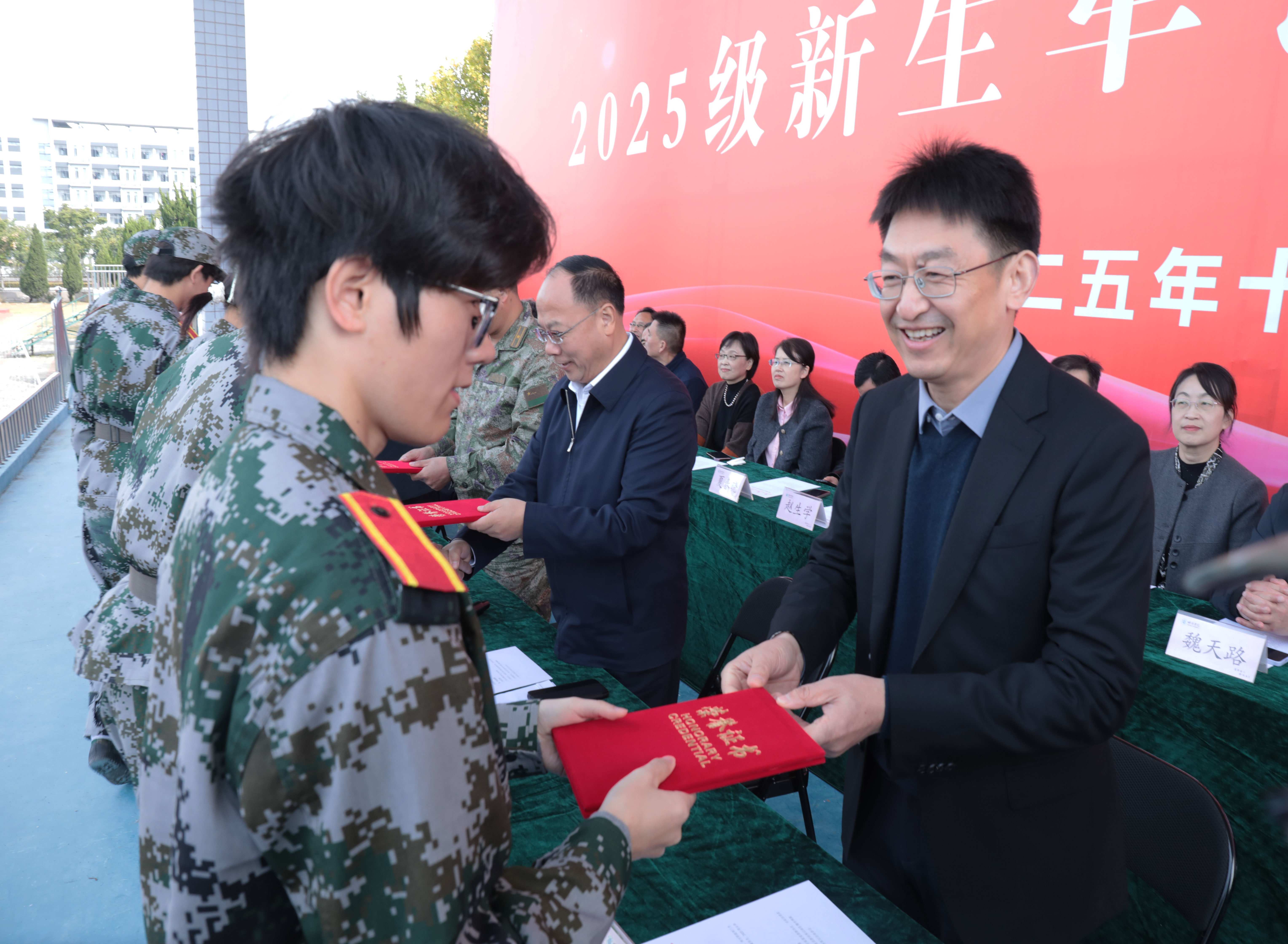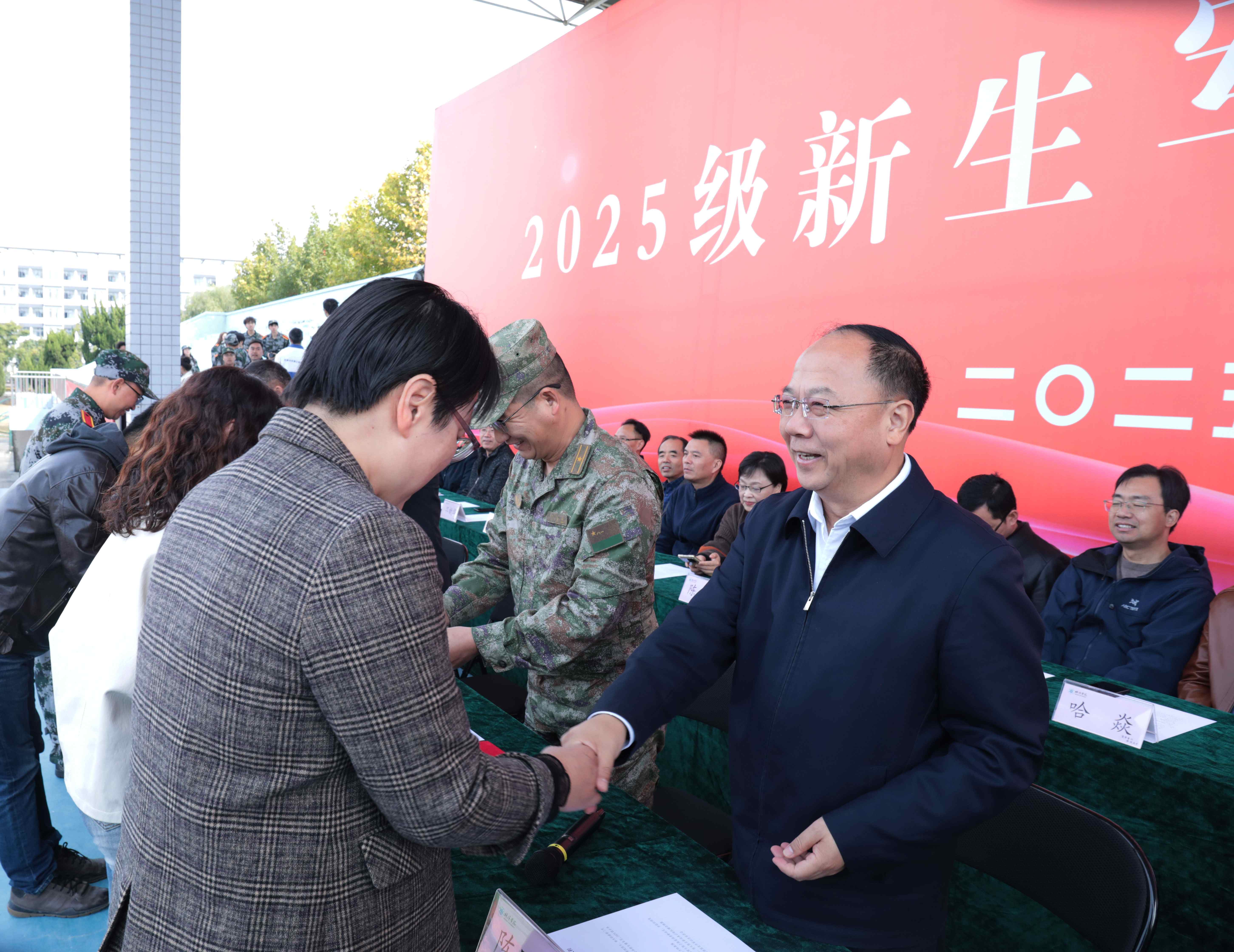 党委书记陈国龙在总结讲话中向顺利完成军训任务的全体新生表示祝贺,并向承训部队官兵致以感谢。他寄语新生:要以军训为起点,筑牢成长根基,践行校训精神;要心怀家国,立强国之志,将个人理想融入强国建设浪潮,全面提升核心素养;要以校为家,扛起迎评之责,用实际行动为学校建设地方性应用型高水平大学贡献力量。