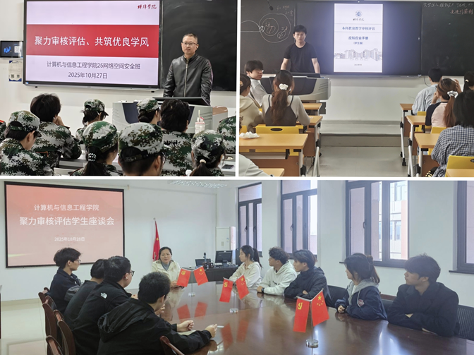 为全面贯彻落实学校本科教育教学审核评估工作要求,进一步提升全院师生对评估工作的认知度、参与度和配合度,计算机与信息工程学院于近日分层分类组织开展本科教育教学审核评估专题学习活动,覆盖全院教职工和学生群体,确保评估要求传达到每一位师生。