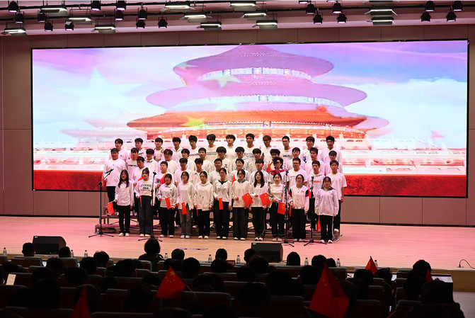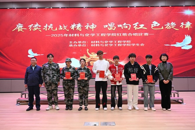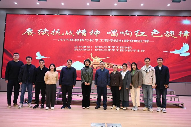 为纪念中国人民抗日战争暨世界反法西斯战争胜利80周年,深化爱国主义教育,传承红色基因。10月29日晚,材料与化学工程学院在图书馆学术报告厅成功举办“赓续抗战精神,唱响红色旋律”2025级新生红歌合唱比赛。学院党委书记张敏、院长葛金龙、党委副书记朱银邦出席活动,新生辅导员、班主任担任评委,与全体2025级新生共同参与了这一庄重而热烈的文艺盛事。