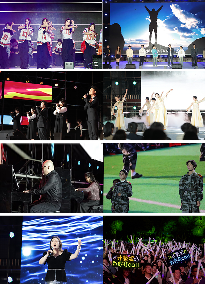 晚会在“奔跑的青春”歌舞表演中拉开帷幕,流行歌曲串烧与动感舞蹈彰显青春活力,《强国有我青春担当》朗诵体现红色基因的传承,卫调花鼓戏《樊梨花点兵》展现传统文化魅力,新入职辅导员的合唱《爱》、《红蜻蜓》传递温暖力量,将晚会气氛推向高潮……音乐与舞蹈学院郭千、李书宁老师带来的双钢琴演奏《桑巴舞曲》、郭婧文老师独唱《我的深情为你守候》以及艺术设计学院CLOUD CIRCUS乐队等节目,更是展示了学校美育教学的较高水平,突出了美育育人成效。