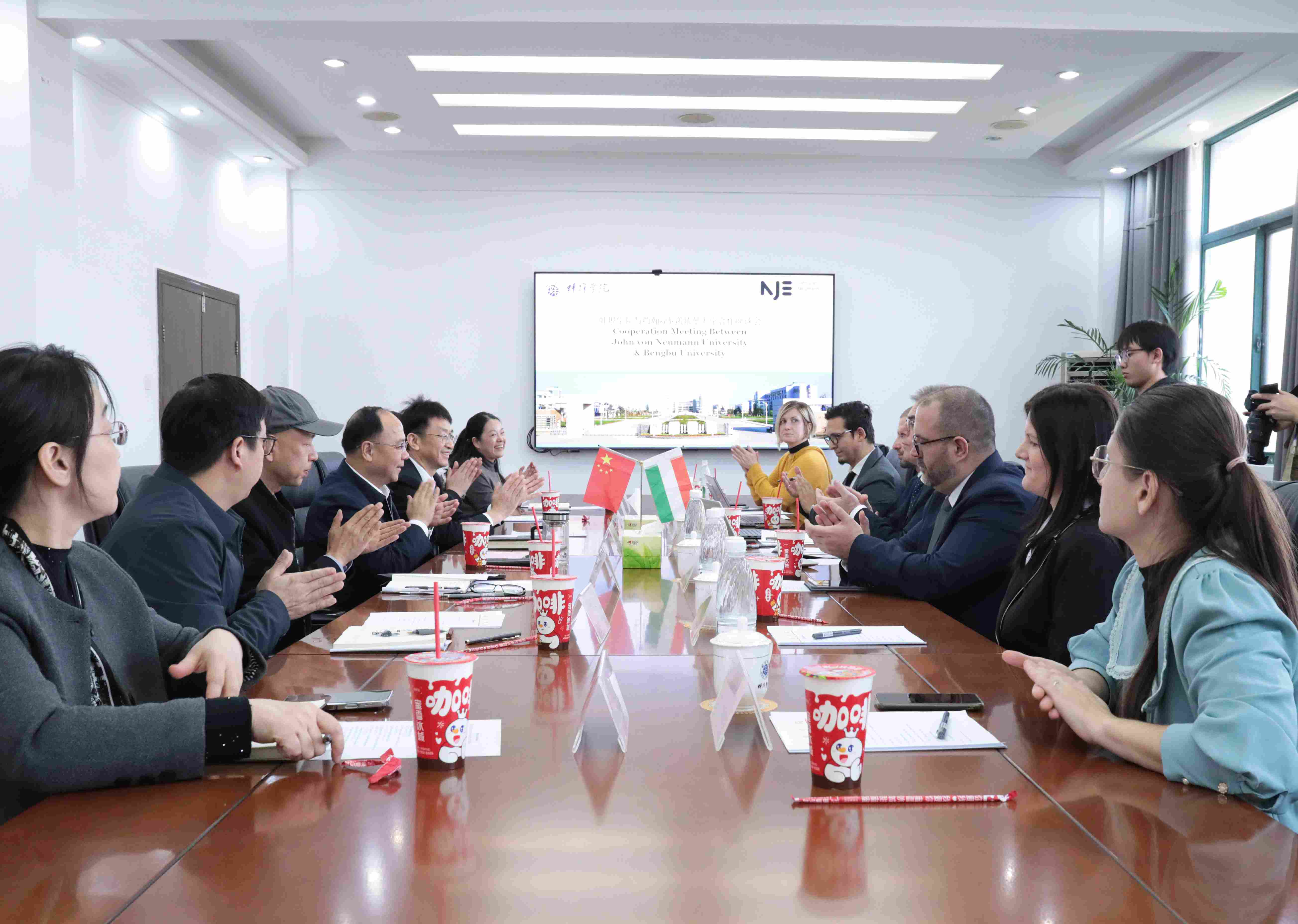 11月2日,匈牙利约翰·冯·诺依曼大学代表团再次莅临我校进行访问。我校党委书记陈国龙、校长张亚新等领导热情接待了来访团一行。代表团由约翰·冯·诺依曼大学校基金会战略总监Szemerey Szabolcs领队,成员包括该校国际处处长Kohi Habib,车辆与创新材料系主任Bata Attila,以及Tóth László、Varga Erica两位专业教师。