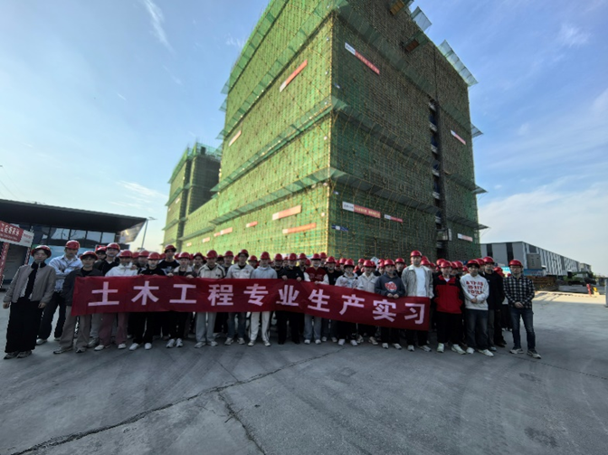为深化理论知识理解,筑牢实践教学根基,2025年11月4日,土水学院土木工程专业姜丽、杨晓波、欧元超、杨婷婷四位教师带领2022级土木工程专业学生前往蚌埠市经开区临港产业园与蚌埠市新一中项目施工现场,圆满完成本专业生产实习教学任务。
