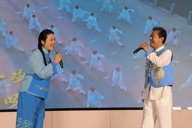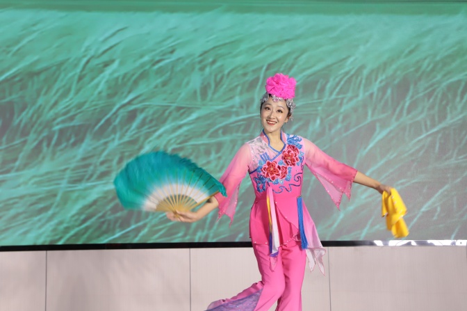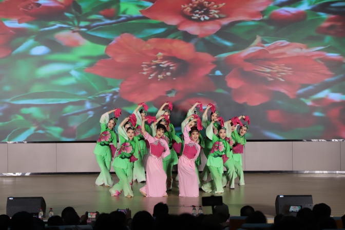 第三篇章“非遗传承·乐舞筑梦”聚焦中华优秀传统文化的传承和创新。五河民歌、安徽花鼓灯、泗州戏等非遗文化承载着地域记忆,彰显着文化自信。薛胜友、张成英老师演唱的五河民歌《五只小船》描绘了小船行驶于水乡河道间的生动画面,具有鲜明的地域特色与民间韵味。张楚楚老师舞蹈《俏兰花》展现了皖北女子的活泼可爱和积极向上的精神风貌;音乐专业学生表演唱泗州戏《石榴开花红似火》抒发对幸福生活的祝愿与赞美。