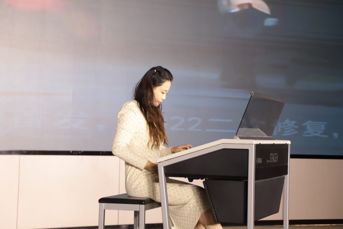 音乐会以“峥嵘岁月·信仰之光”开篇,以旋律追溯革命记忆。在风雨如晦的革命年代,音乐是战斗的号角,是唤醒民众的呐喊,一曲红歌就是一段鲜活的历史。焦梓欣老师双排键独奏《红色娘子军序曲》刻画了红军女战士英勇无畏的革命形象,展现了革命队伍昂扬向上的精神风貌;王莹莹老师表演唱《等上一辈子》演绎了水乳交融、血肉相连的军民情谊;张潇潇老师歌唱《红梅赞》歌颂了中国共产党人在严峻斗争环境中坚贞不屈的革命气节,展现了对理想信念的坚定坚守。