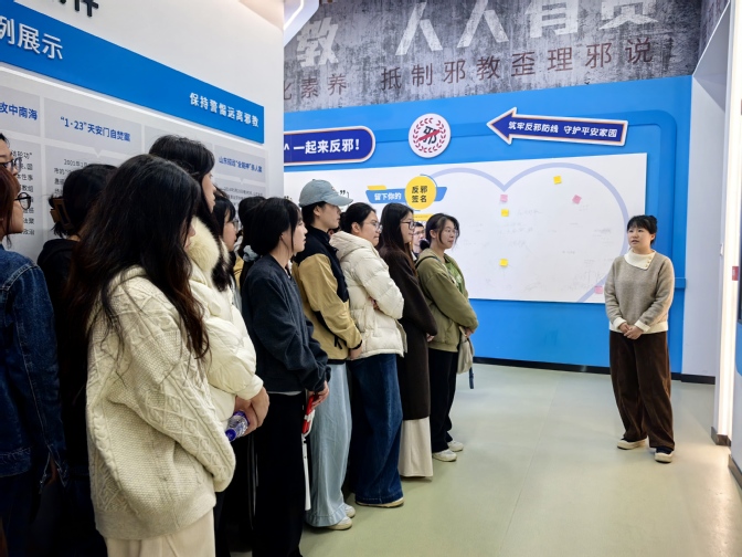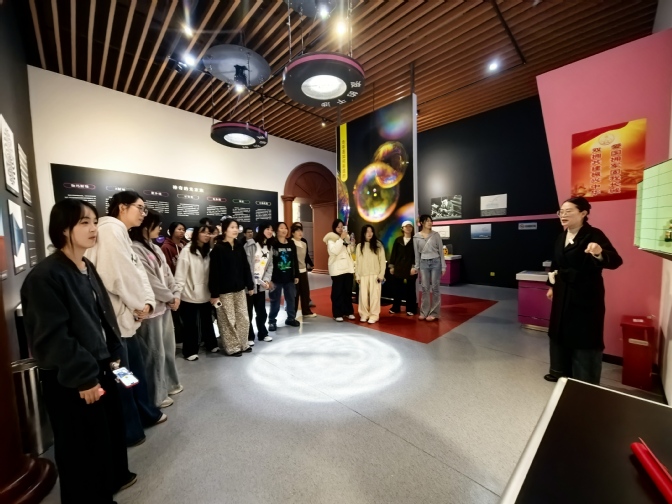 2025年1 月14日下午,艺术设计学院视觉传达设计专业师生赴蚌埠市科技馆开展校地合作项目实践调研。刘青、陈书琴两位教师带领22级视觉传达专业两个班级学生,通过实地参观反邪教教育基地-蚌埠市科技馆,探索“设计服务地方” 的创新路径,将课程思政融入实践教学,推动专业教育与社会责任感培养深度融合。