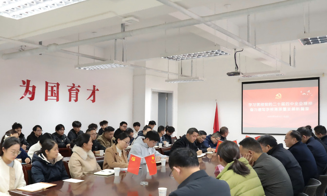 陈国龙强调,党的二十届四中全会是我们党在向第二个百年奋斗目标进军新征程上举行的一次十分重要的会议,学习好、宣传好、贯彻好全会精神,是当前和今后一个时期全校的重大政治任务,要提高政治站位,持续在全校范围内掀起学习宣传贯彻全会精神的热潮;要做好融入文章,把全会精神全面、系统、深入地融入到学校“十五五”规划编制中,使规划充分体现国家要求、符合时代特征、彰显学校特色;要保持攻坚态势,全力以赴完成审核评估和创建硕士学位授予单位等重点工作任务,以实际成果检验学习成效;要加强党的领导,全面提升党建工作科学化水平,以高质量党建引领学校事业高质量发展。