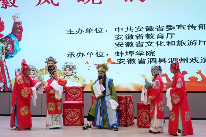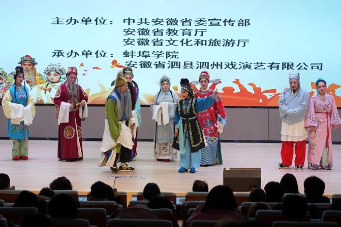 11月21日下午,“2025年校园大舞台——徽风皖韵进高校”活动走进蚌埠学院。本次活动由中共安徽省委宣传部、安徽省教育厅、安徽省文化和旅游厅共同主办,安徽省泗县泗州戏演艺有限公司与蚌埠学院联合承办。现场400余名师生齐聚一堂,共同观赏了一场精彩纷呈的徽韵雅音。