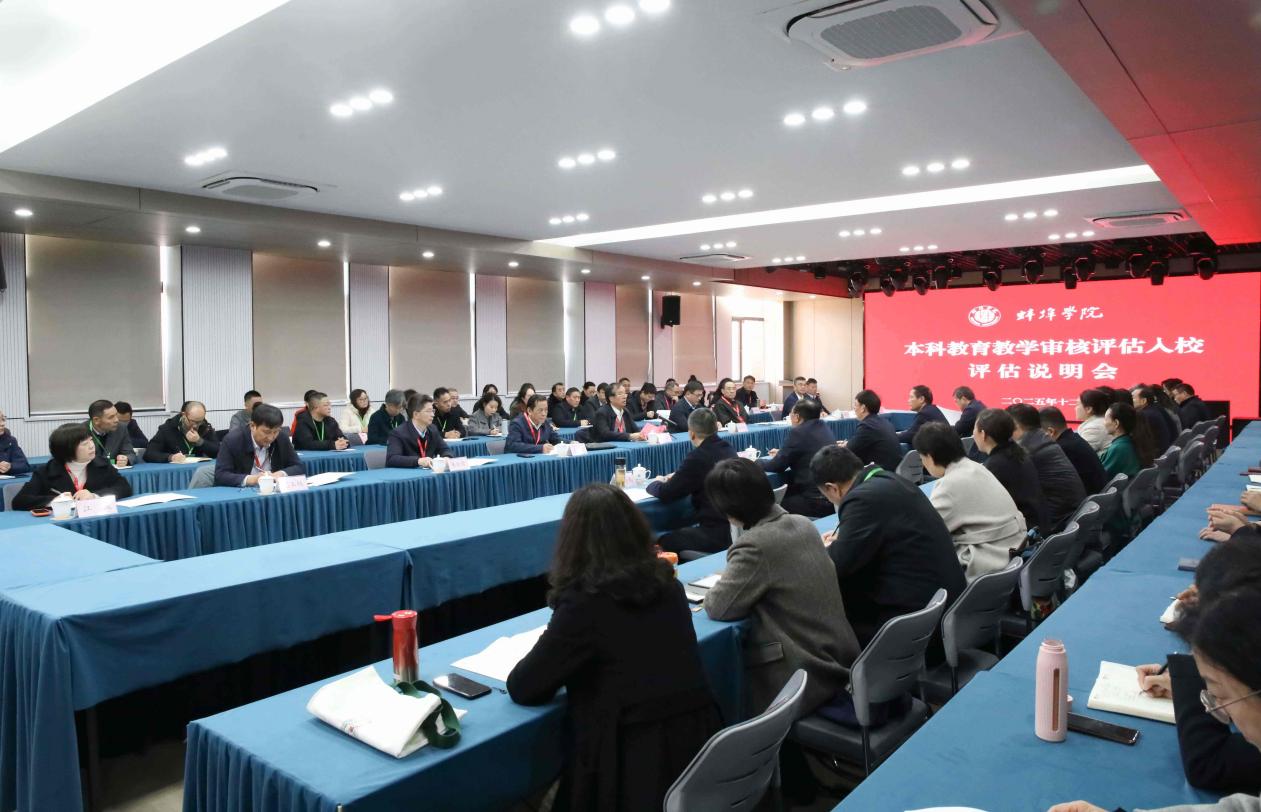2025年12月1日上午,蚌埠学院本科教育教学审核评估入校评估说明会在学校5G双创中心多功能厅召开。专家组组长、陕西师范大学原副校长党怀兴作入校评估说明,蚌埠学院党委副书记、校长张亚新致辞。专家组全体成员,蚌埠学院校领导、各职能部门主要负责人、各二级学院党政班子全体成员参加会议。