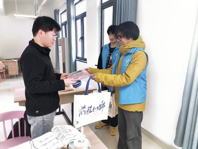 与此同时,在图书馆、自习室等考研学子集中的学习场所,学院考研学社与学生会代表们也同步开展了礼包发放活动。为了不过多打扰同学们宝贵的复习时间,学生代表们轻步穿梭于一排排书桌之间,将礼包悄悄放置在专注学习的学子手边,或利用休息间隙进行简短而热情的赠送。礼包虽轻,情谊却重,一份份承载着师弟师妹们真挚祝福的礼物,为静谧而紧张的学习空间注入了一股暖流。收到礼包的同学们露出惊喜的笑容,短暂交流中彼此加油打气,共同凝聚起拼搏向上的力量。