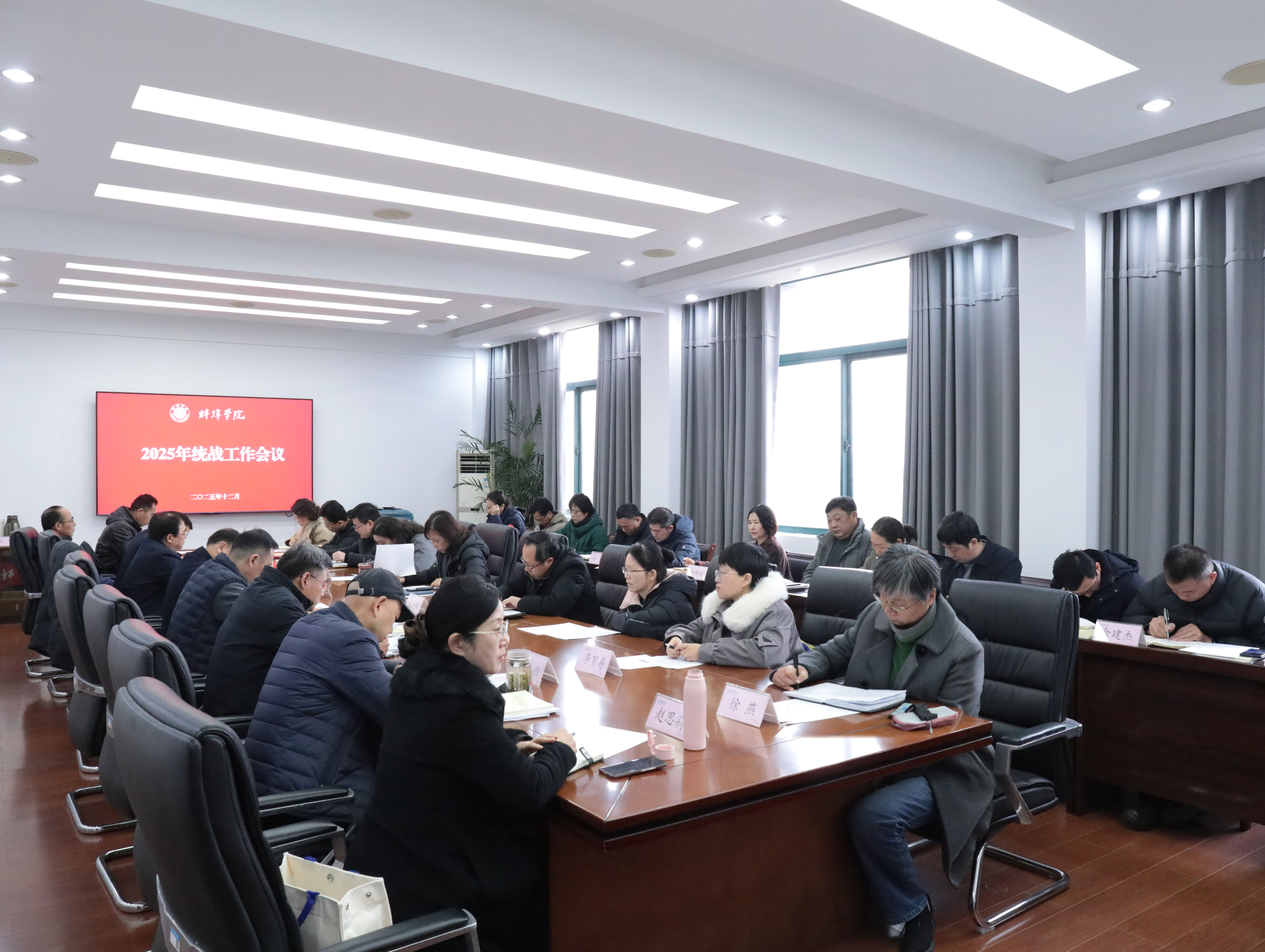 12月24日上午,学校召开2025年统战工作会议,会议深入学习贯彻党的二十届四中全会精神和习近平总书记关于做好新时代党的统一战线工作的重要思想,总结2025年统战工作,研究部署2026年工作。党委书记陈国龙出席会议并讲话,党委副书记韦文联主持会议。学校统战工作领导小组成员单位负责人、各民主党派统战团体基层组织主要负责人参会。
