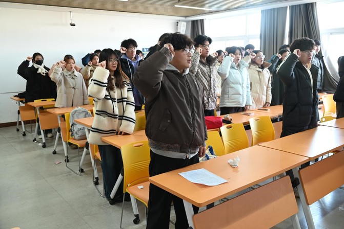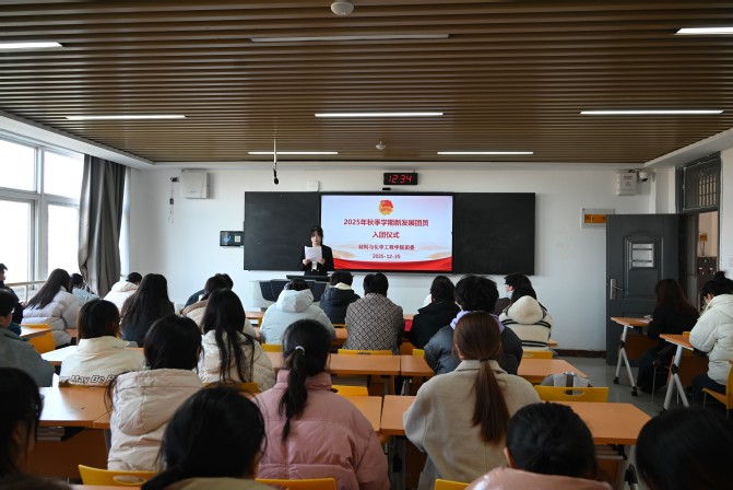 为推进共青团组织建设,强化青年思想引领,引导学生坚定理想信念、增强责任意识,材料与化学工程学院于12月25日在B413教室举行2025-2026学年第一学期新发展团员入团仪式。