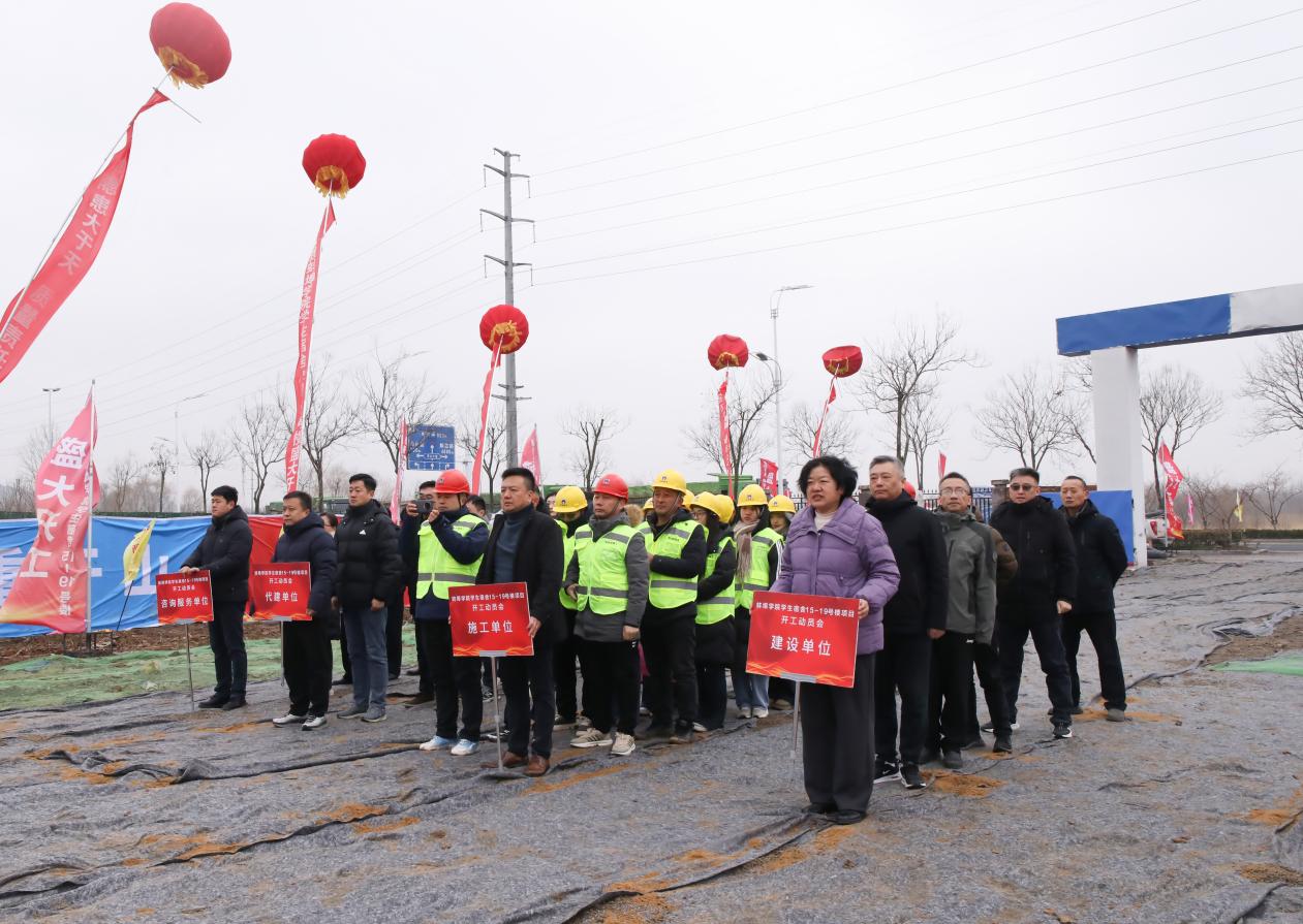 2026年1月30日上午,蚌埠学院学生宿舍15-19号楼项目开工动员会顺利举行,蚌埠学院党委委员、副校长马伟,代建单位蚌埠市重点工程建设管理中心副主任周钢,蚌埠城建投资发展有限公司总经理梁万磊,施工单位华新建工集团有限公司集团副总裁吕厚俊等出席,学校相关职能部门负责人、参建单位代表参加。