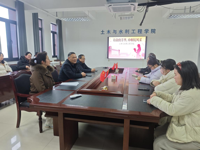 芳菲三月,巾帼绽风采。为庆祝第116个“三八”国际劳动妇女节,3月4日下午,土木与水利工程学院分工会在学院418会议室举办“诗韵致芳华,巾帼绽风采”主题庆祝活动。学院党委书记张兆亮、院长戚晓明、分工会主席宋丹丹与学院全体女教职工齐聚一堂,共庆佳节、共话芳华。