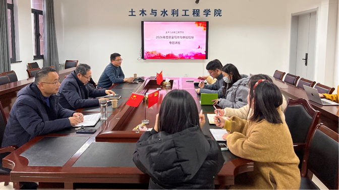 为进一步提升土木与水利工程学院青年教师科研项目申报质量,强化国家自然科学基金等项目申报的组织与指导,2026年3月5日下午,在理工楼418室举办了“土木与水利工程学院2026年度青年基金写作与申报指导专题讲座”。安徽科技工程大学李飞跃教授应邀作专题报告,院长戚晓明、副院长朱兰保及青年博士教师参加本次讲座。
