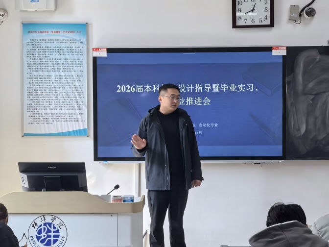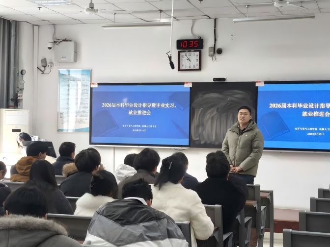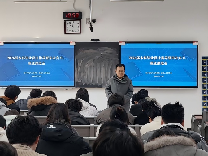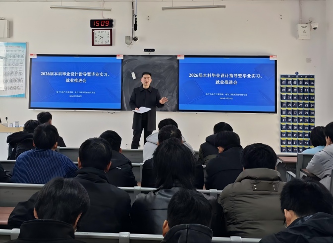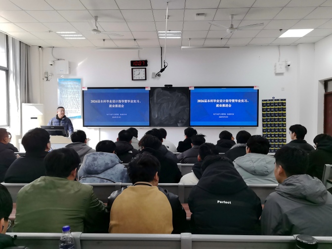 为扎实推进2026届本科人才培养收尾工作,保障毕业设计质量、规范毕业实习管理、助力毕业生高质量就业,3月13日,电子与电气工程学院分专业于G203、G204、G303、G304教室召开2026届本科毕业设计指导暨毕业实习、就业推进会。学院党委书记哈焱、院长王艳春、党委副书记马程、副院长薛大为、各专业负责人、2026届全体毕业班辅导员及毕业设计指导教师、2026届毕业生参会。