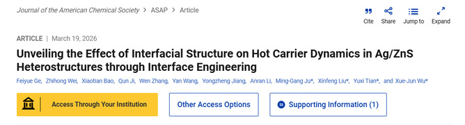 近日,材料与化学工程学院葛飞跃博士以第一作者,在国际知名期刊《Journal of the American Chemical Society》发表题为“Unveiling the Effect of Interfacial Structure on Hot Carrier Dynamics in Ag/ZnS Heterostructures through Interface Engineering”的研究论文。