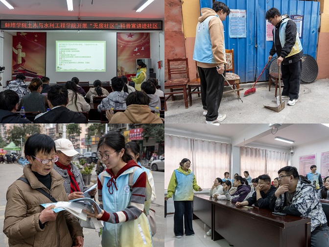 为深入贯彻习近平生态文明思想,推动“无废城市”理念走进基层、深入人心,3月25日,土木与水利工程学院团委、环境学生党支部、校后勤管理处联合龙子湖区委宣传部走进光明街社区,开展“共建无废新社区,同筑绿色幸福家”主题科普宣讲活动,引导居民践行绿色生活方式,营造共建共享的生态文明新风尚。
