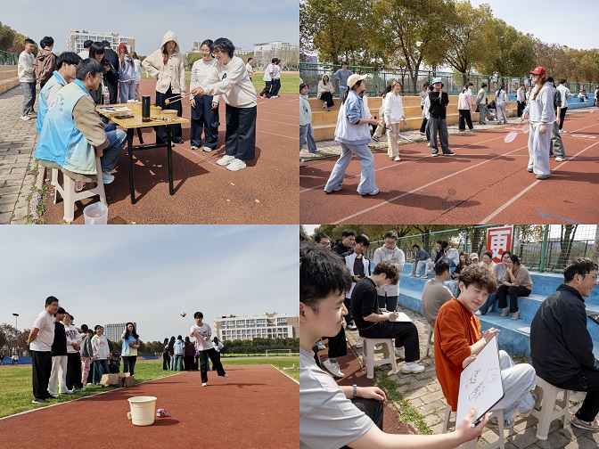 活动当日,同学们热情高涨,积极参与各项趣味活动。羽毛球接力环节,同学们步伐矫健、配合默契,以流畅的衔接完成接力;拔河赛场中,队员们齐心协力、奋力拼搏,在口号声中展开力量与耐力的比拼。此外,投壶侧重考验专注力与精准度,沙包井字需要策略布局,筷子夹乒乓球比拼手眼协调,“滚雪球”强调团队配合与协作。各类游戏环节交替进行,现场气氛热烈,同学们在互动中增进交流,在协作中培养默契。从竞技项目到趣味游戏,从个人参与到团队配合,同学们在春日暖阳中放松身心、加深情谊,展现出积极向上的精神风貌。