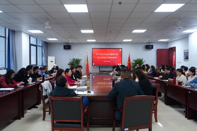 202648下午,文学与教育学院举行全体教职工政治理论学习会。学院党委书记余建杰领学了习近平总书记重要文章《树立和践行正确政绩观》习近平总书记给四所交通大学全体师生的回信。本次学习旨在引导全体教职工深入学习习近平总书记最新重要讲话和重要指示批示精神,并转化为推动学院高质量发展的实际行动。