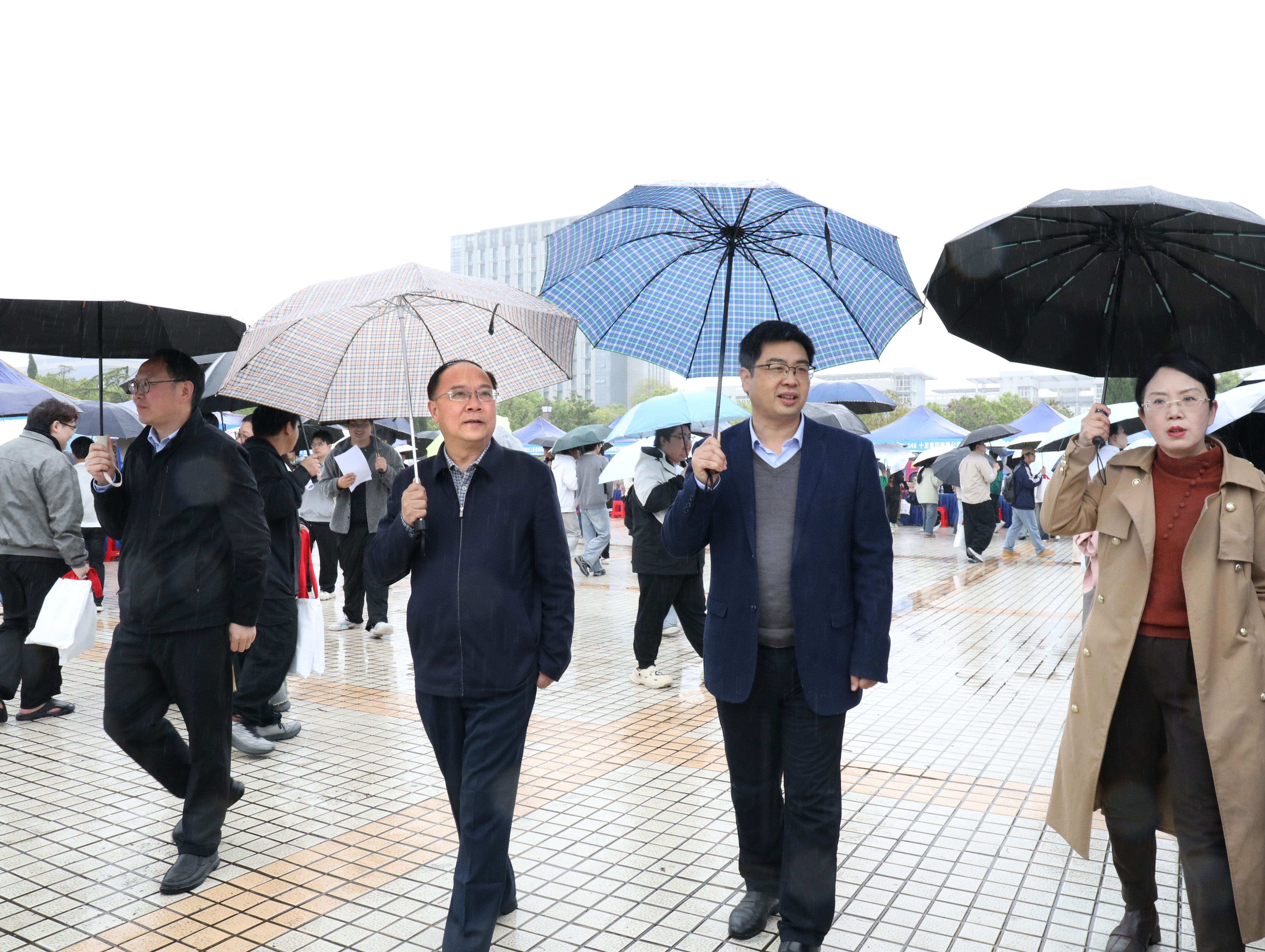 4月22日下午,蚌埠学院2026届毕业生春季校园双选会在图书馆西侧广场举行,共计218家用人单位来校选聘毕业生。党委书记陈国龙、校长张亚新、党委副书记方贤文、副校长张尔桂亲临现场指导工作。学校党委学生工作部、各二级学院负责同志,全体毕业班辅导员以及2026届毕业生参加。