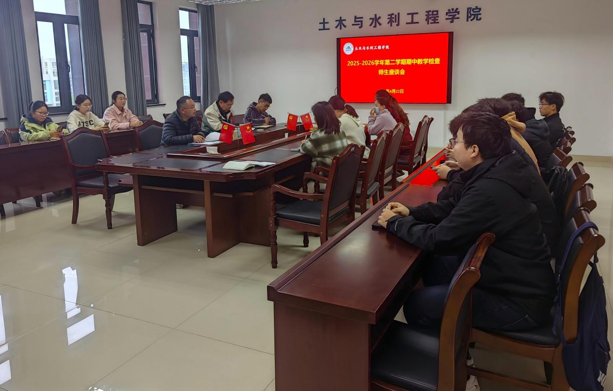 为进一步加强师生双向沟通,持续提升教学管理服务水平,学院于2026年4月22日在理工楼会议室召开了2025-2026学年第二学期期中教学检查师生座谈会。会议由副院长朱兰保主持,校级督导程荣龙莅临指导,教研室主任、教学管理人员以及各班级学生代表参加了会议。