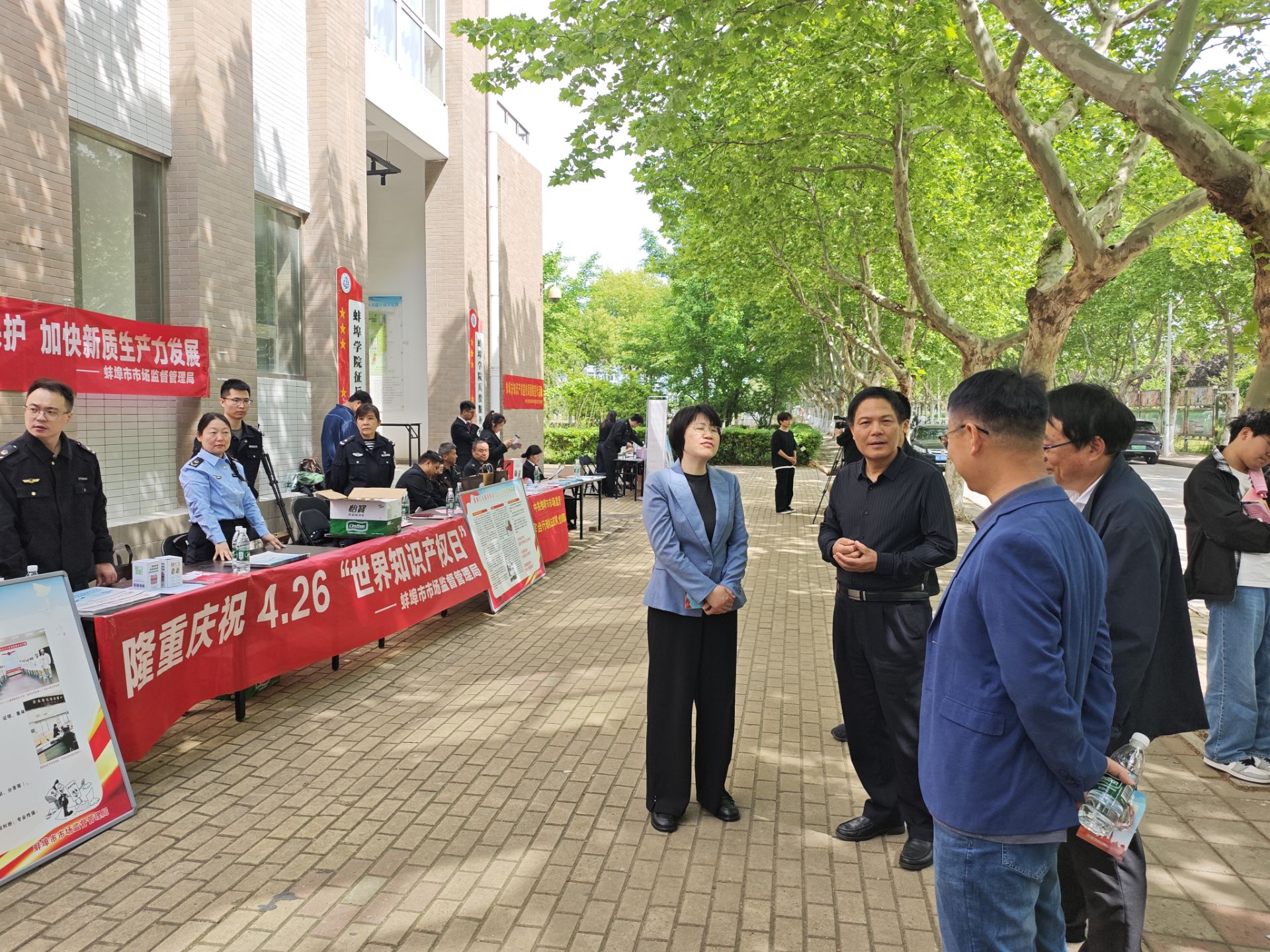 为迎接第26个世界知识产权日,进一步加强知识产权保护、助力新质生产力发展,4月26日上午,学校与蚌埠市市场监督管理局在蚌埠学院联合开展主题普法宣传活动。副校长郭有强、市市场监督管理局副局长沈玉玲出席本次活动。科研处、蚌埠市委宣传部、市人民法院、市公安局、市市场监管综合行政执法支队等部门参加活动。
