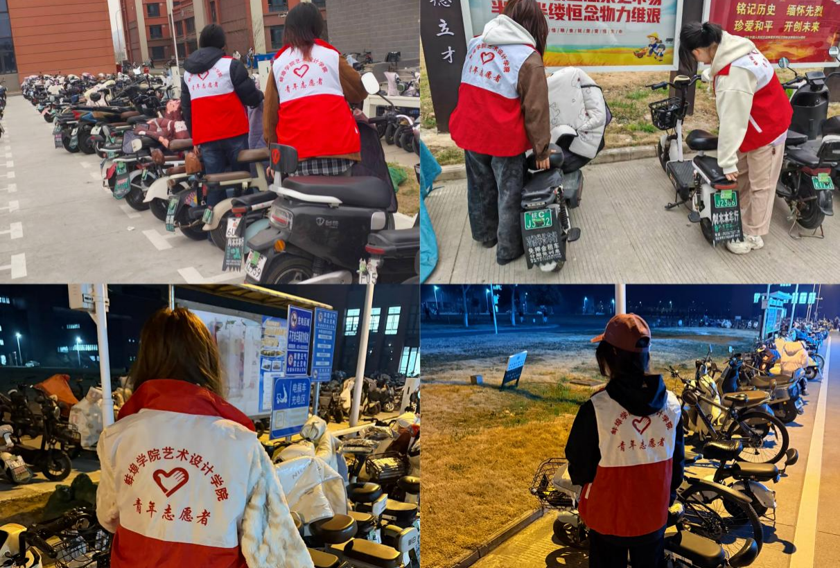 三月学雷锋志愿服务月期间,蚌埠学院艺术设计学院学子紧扣“党建引航·‘艺’心向党”主题,立足专业特色,走进校园与蚌埠市长途汽车中心站,开展系列志愿服务活动,以实干担当书写新时代雷锋故事,让青春在奉献中焕发绚丽光彩。 校园里,化身“文明守护者”在校园内,学院志愿者积极投身电瓶车规范停放治理专项行动。每日上下课高峰时段,志愿者们分组驻守宿舍区、教学楼主干道、食堂周边及停车棚等人流车流密集区域。面对电瓶车乱...