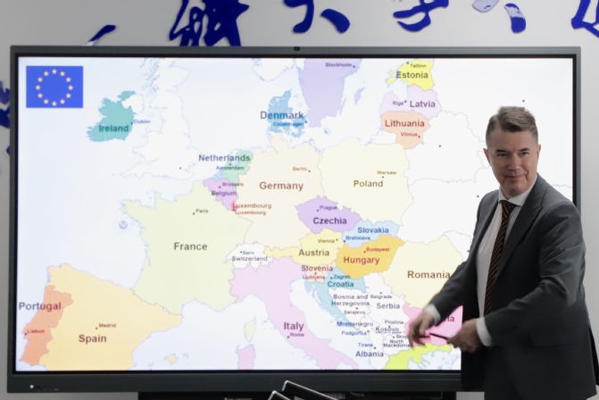 匈牙利约翰·冯·诺伊曼大学商学院院长卡帕缇·约瑟夫博士(Dr.KárpátiJózsef)作了题为《企业出海匈牙利(欧洲)投资指南与风险管理》的专题报告。他从欧盟关税同盟运作机制、匈牙利公司注册流程、税收优惠政策、产品安全标准等维度,系统介绍了中国企业进入欧洲市场的前期准备、关键问题和风险防控措施,为有意布局中东欧市场的企业提供了专业指南。