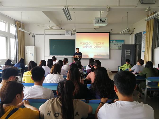 今年是新中国成立70周年,开展“不忘初心、牢记使命”集中学习交流活动,对深入推进“两学一做”学习教育常态化、制度化,充分发挥广大党员的先锋模范作用,不断增强学生基层党组织的凝聚力、号召力和战斗力具有十分重要的意义。文教学院第一、二、三支部于9月25日中午12:30在教学楼B322召开了学习交流会。学生第二支部书记董琬如主持了会议。