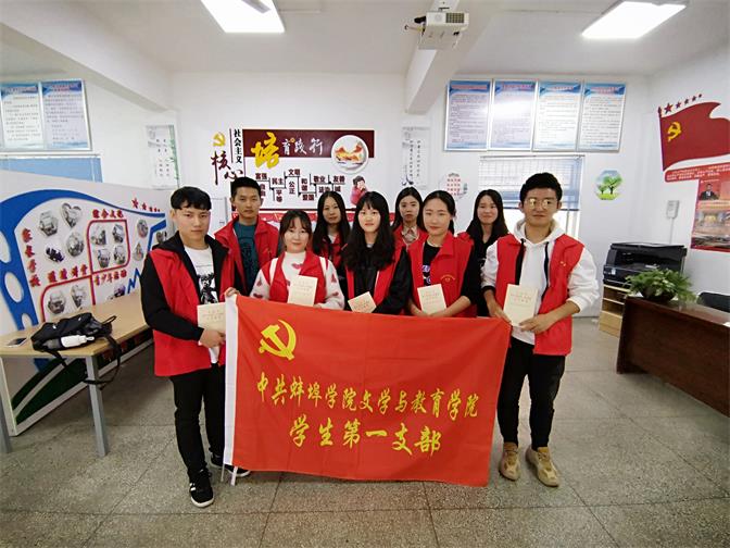 为贯彻落实习近平新时代中国特色社会主义思想,践行青年不怕吃苦、为人民服务的精神,2019年10月9日,文学与教育学院学生第一党支部在蚌埠市胜利五村开展了“不忘初心、牢记使命”主题党日活动。