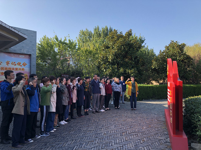 纪念馆前全体党员庄严地举起右拳,面对鲜红的党旗,庄严宣誓:“我志愿加入中国共产党,拥护党的纲领,遵守党的章程……随时准备为党和人民牺牲一切,永不叛党”。字字铿锵,句句坚定,表达了党员干部的承诺和决心。