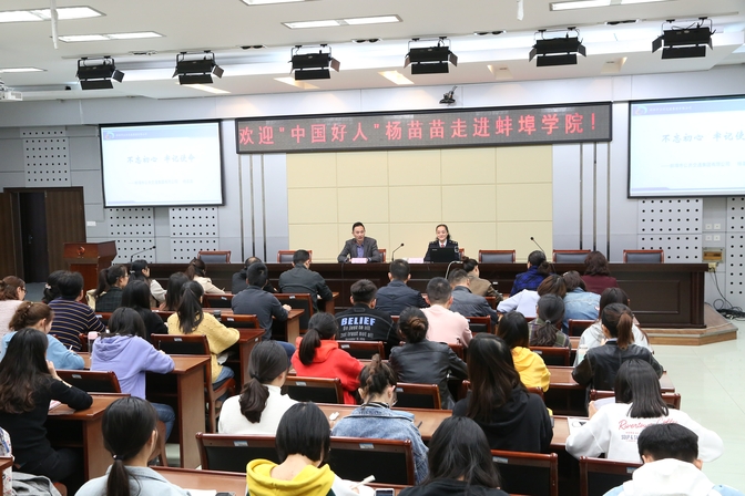 10月15日,我校在行政楼视频会议室举行“道德讲堂”“道德模范进校园”活动,党委宣传部和经济与管理学院邀请党的十九大代表、中国好人、蚌埠公交公司驾驶员杨苗苗来校为师生党员作“不忘初心、牢记使命”主题教育宣讲。宣讲会在行政楼视频会议室举行。党委宣传部副部长杨安升,经济与管理学院党总支书记杨晓秋、院长赵鸿雁、副院长李文瑛,以及经济与管理学院全体师生党员参加了本次宣讲会。宣讲会由赵鸿雁主持。