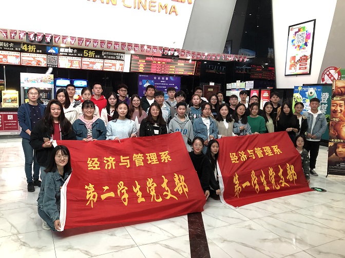 为热烈庆祝新中国成立70周年,扎实推进“不忘初心、牢记使命”主题教育,激发全体党员的爱国热情。10月17日,经济与管理学院党总支组织第一、第二学生党支部的师生党员集中观看国庆献礼影片《我和我的祖国》,第二学生党支部书记夏晓燕、辅导员王兆雯带队,全体学生党员参加此次主题教育活动。