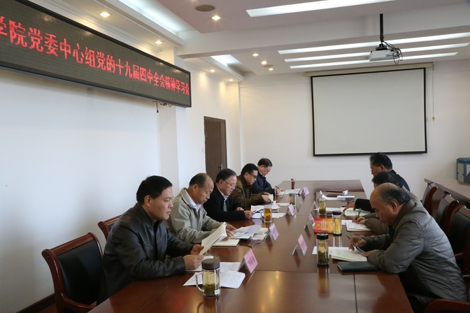 11月29日,蚌埠学院党委理论学习中心组在行政楼第二会议室召开会议,传达学习党的十九届四中全会精神。党委书记刘泽功主持会议。学校党委理论学习中心组全体成员、“不忘初心、牢记使命”主题教育办公室成员参加学习。