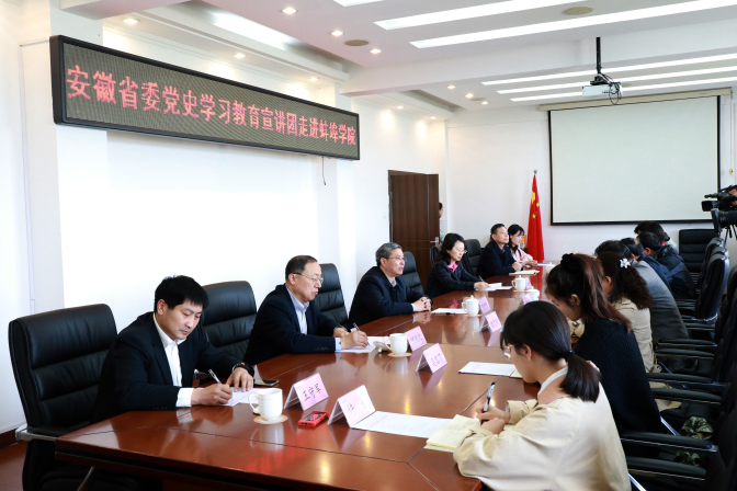 4月6日,安徽省委党史学习教育宣讲团成员、安徽师范大学教授路丙辉在蚌埠市委常委、宣传部长谢兵和蚌埠市委宣传部副部长何延之的陪同下来到蚌埠学院宣讲党史,并与蚌埠学院师生代表作互动交流。蚌埠学院党委书记陈国龙,党委委员、宣传部长李荣参加宣讲交流会。会议由谢兵主持。
