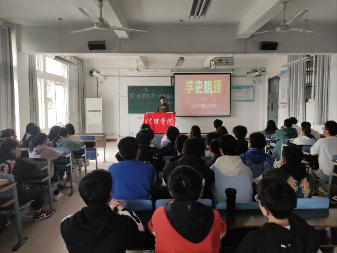 思政引领,学史明理。数理学院党总支成员和各党支部书记为学生做了主题为《2021年中国共产党党史专题学习--庆祝建党一百周年》,《从党史中吸取奋进力量 当代大学生的历史使命与担当》等专题思想政治课,把党史教育贯穿于学生的日常思想政治教育当中。旨在让学生在党史学习中深刻理会“为何学”,清晰掌握“怎样学”,准确紧扣“学什么”,立足实际、守正创新,以优异的学习成绩向建党100周年华诞献礼。