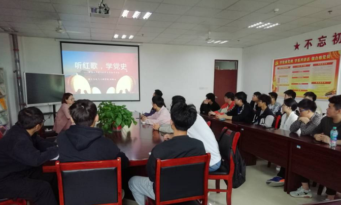 根据学校党委开展党史学习教育工作部署安排,为引导支部党员了解党的光辉历史,感悟党的初心使命,促进党员同志学史明理、学史增信、学史崇德、学史力行,电子与电气工程学院学生党支部于4月29日中午开展“听红歌,学党史”暨党史学习教育专题党课。本次党课由学生第二支部书记刘斯文讲授,全体学生党员参加。