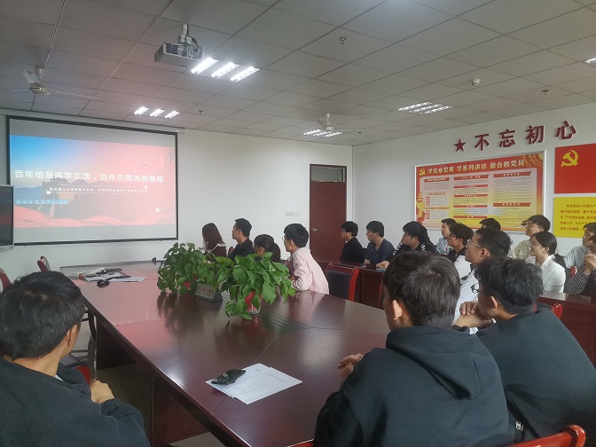 “没有共产党就没有新中国,没有共产党就没有新中国,共产党,辛劳为民族,共产党他一心救中国……”,会议首先以经典红歌《没有共产党就没有新中国》作为开场,表明了中国共产党的创建,是中华民族发展史上开天辟地的大事变,具有伟大而深远的意义。随后,刘斯文为支部党员先后播放了党的浴血奋战,实现民族独立;艰难探索,社会主义建设在曲折中前进;改革开放,走上中国特色社会主义新道路;新时代新征程,为全面建成小康社会而奋斗等四个不同的历史进程中的《南湖的船党的摇篮》、《歌唱祖国》、《在希望的田野上》、《我爱你,中国》等22首红歌,带领全体党员在经典红歌中回溯百年党史,以音乐展现祖国的不平凡历程。