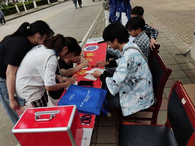 为庆祝中国共产党成立100周年,进一步深入学习贯彻习近平总书记在党史学习教育动员大会上的重要讲话精神,将“我为青年做件事”主题实践活动落实落细,大力弘扬“奉献、友爱、互助、进步”的志愿精神,2021年5月17日,电子与电气工程学院学生会在蚌埠学院主干道进行摆台并征集全院学生对学校建设提出意见。