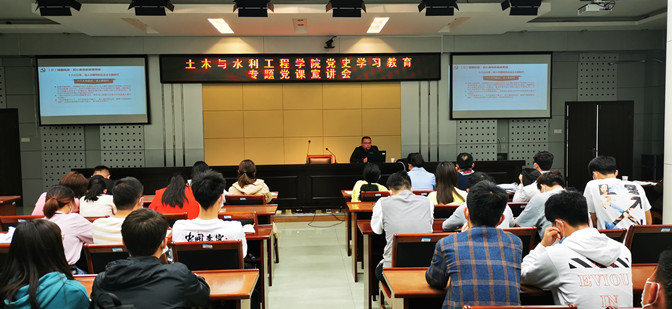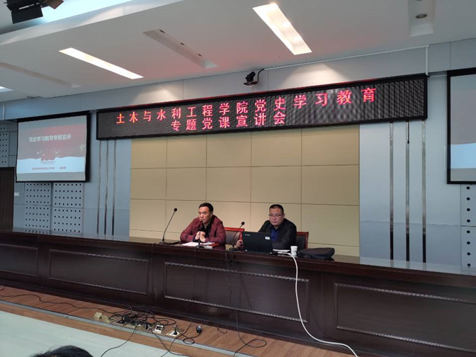 5月19日中午,土木与水利工程学院在视频会议室二楼举办了党史学习教育专题宣讲会。宣讲会由党总支书记张兆亮主持,邀请了蚌埠市联合马克思主义学院专家宣讲团成员卓家武副教授为全体教职工党员、学生党员和各团支部书记作党史教育专题宣讲。