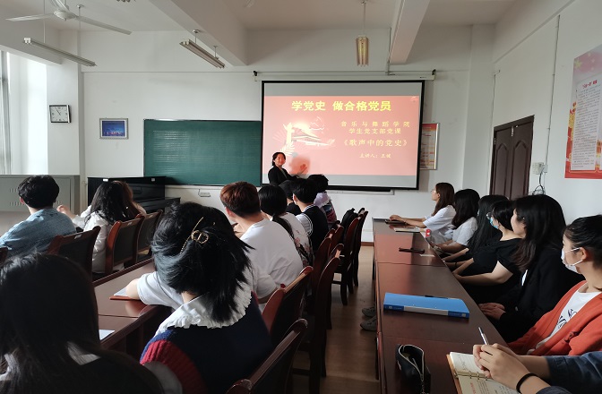 5月18日中午,音乐与舞蹈学院在艺馨楼E208会议室开展“歌声中的党史”党史学习教育党课,音乐与舞蹈学院副院长王媛主讲,学生党员、预备党员及入党积极分子参加。