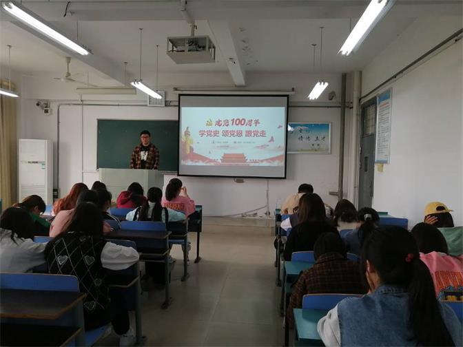各班班长、团支书以“建党100周年,跟党走”为主题开展班会活动,各班级活动形式丰富多彩,严肃庄重。在主题班会上,班长、团支书们首先带领同学们了解党史学习的重大意义,明确了学习的基本内容和要求,随后带领同学们学习了中国共产党的百年历史,观看了革命党史精彩片段,学习了革命先烈的英雄事迹,学习了党史百年历程中的重大历史事件。