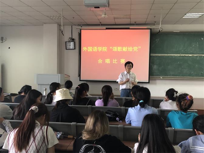 为庆祝中国共产党成立100周年,用歌声缅怀历史,以青春展望未来,2021年5月24日,外国语学院举办“颂歌献给党”主题合唱比赛。院党总支书记赵睿,团总支负责人王刚,辅导员杨小云、王娜娜老师出席比赛并担任比赛评委。
