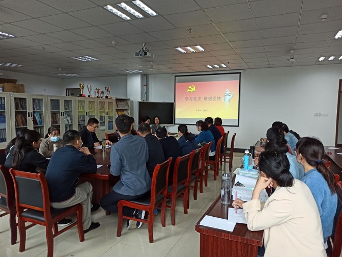 2021年5月20日上午电子与电气工程学院教工党支部开展党史主题教育党课。教工党支部书记杨春兰讲授“学党史,强党性”主题教育党课,全体教工党员参加党课学习。