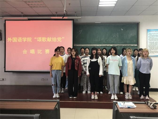 为庆祝中国共产党成立100周年,用歌声缅怀历史,以青春展望未来,2021年5月24日,外国语学院举办“颂歌献给党”主题合唱比赛。院党总支书记赵睿,团总支负责人王刚,辅导员杨小云、王娜娜老师出席比赛并担任比赛评委。