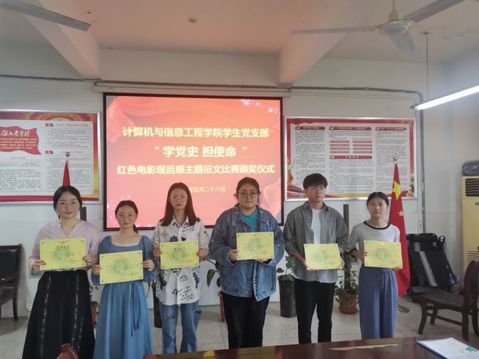 为庆祝中国共产党成立100周年,进一步推进党史学习教育深入开展,激励青年学生党员不忘初心使命,铭记革命先烈,传承红色基因,不断从党的百年奋斗历程中汲取继续前进的智慧和力量。计算机与信息工程学院学生一、二、三党支部于2021年5月9日开展“学党史,担使命”——红色电影观后感主题征文活动。