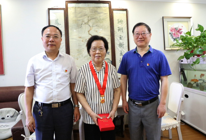陈国龙带队来到老党员张俊排和崔怀礼家中,为他们颁发“光荣在党50年”纪念章。陈国龙与老党员及家属详细交谈,询问了解老党员的生活情况及需要解决的问题,感谢他们为学校发展打下了良好基础,希望他们保重身体。老党员崔怀礼激动万分:“感谢校领导亲自来家中探望,感谢组织对我们老党员的关心,我们会一如既往地关心、支持学校工作,为学校发展建言献策。”陈国龙叮嘱在场的有关部门同志,多关心关爱老党员,用心用情做好服务保障工作,让他们安享晚年。
